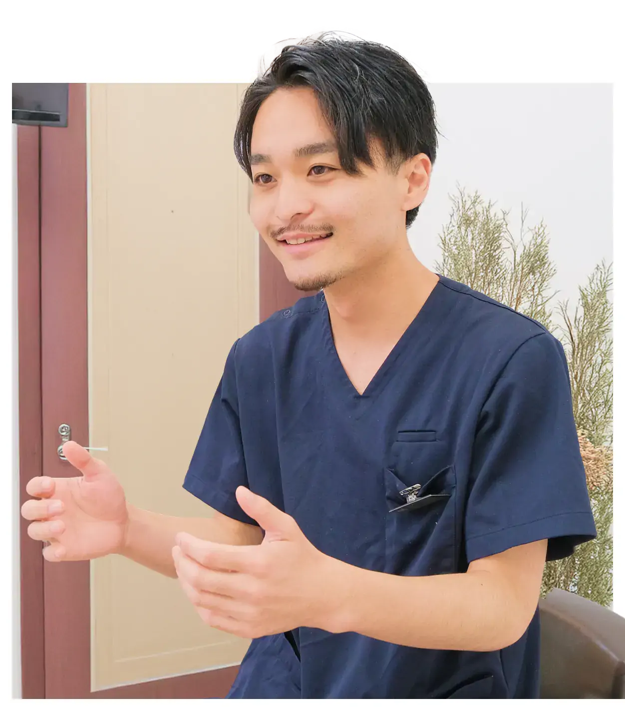 歯医者さんに「怖い」「通いにくい」と感じる方が少しでも安心できるよう、できるだけ痛みの少ない短時間の治療や、リラックスできる院内環境づくりを大切にしています。患者さまの気持ちに寄り添い、お口の状態や治療の進め方をしっかりお話ししながら、一緒に最適な方法を選んでいきたいと考えています。虫歯治療はもちろん、審美・インプラント・矯正など幅広い治療経験を生かし、健康で美しい笑顔を取り戻すお手伝いをいたします。どうぞお気軽にご相談ください